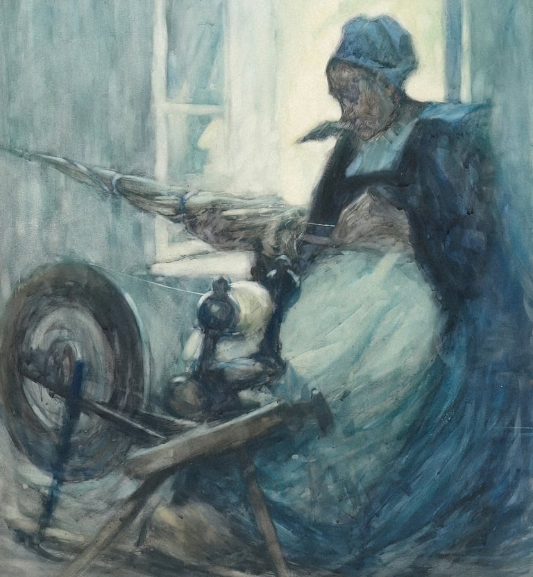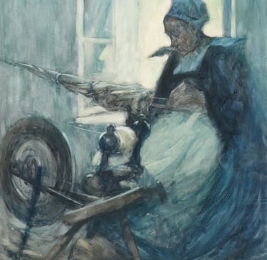 Inside the room are three ancient women…crones. They all have long white hair, sitting with their spinning and their weaving. The colors in what they're making are vivid, rich and alive, more saturated than waking life. The crones feel old in a way that goes beyond age. They feel like ancestors.
